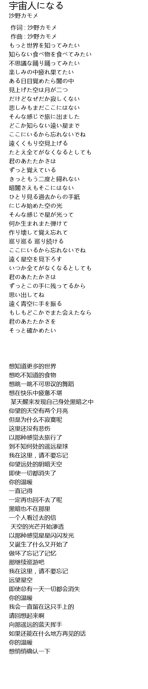 作词 : 沙野カモメ |