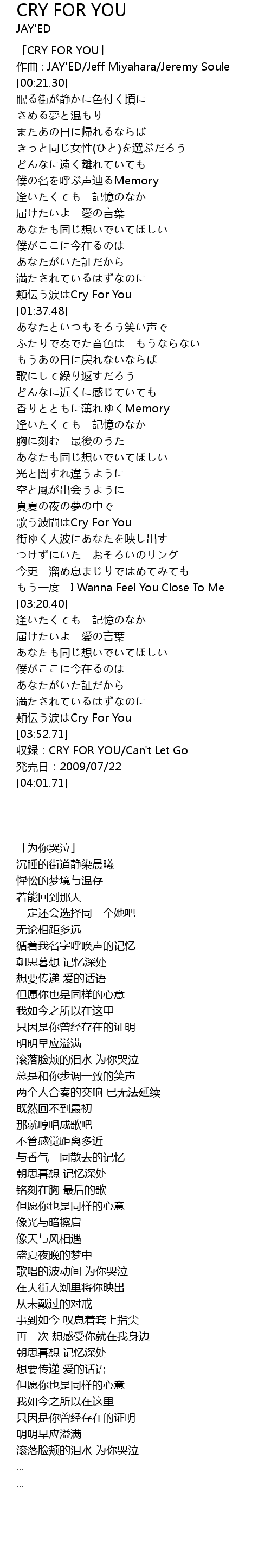 | [03:55.71] | shou lu: CRY FOR YOU Can' t Let Go |