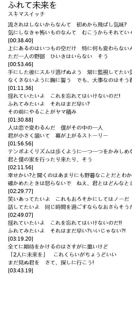 | [03:28.20] | 「2人に未来を」 これくらいがちょうどいい |