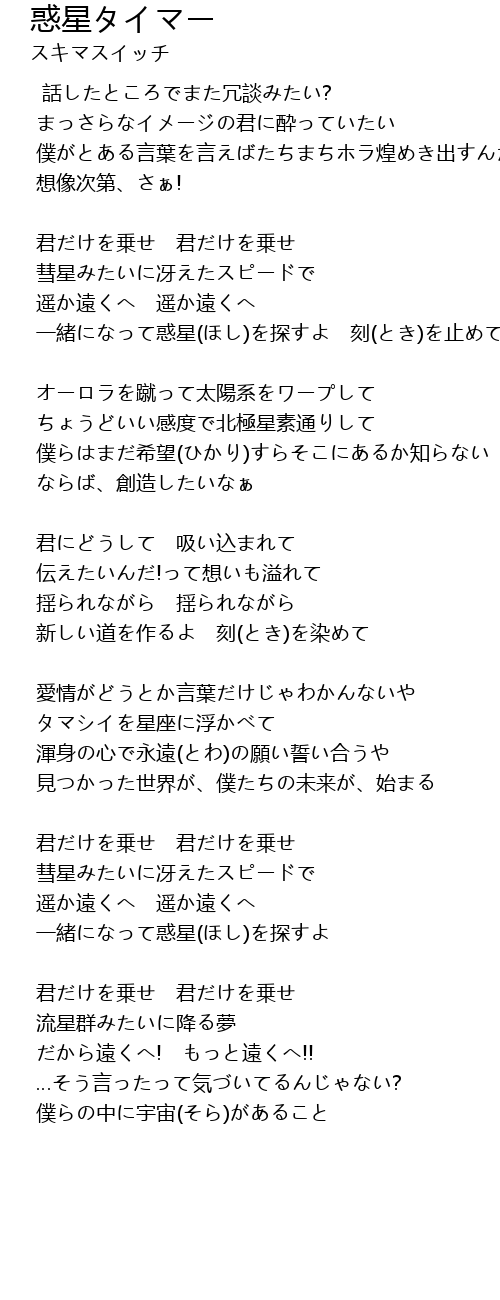 | 一緒になって惑星(ほし)を探すよ 刻(とき)を止めて | |