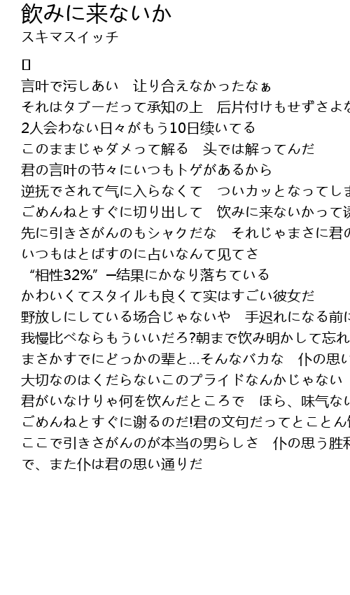 | ごめんねとすぐに切り出して 饮みに来ないかって诱いたいけど | |