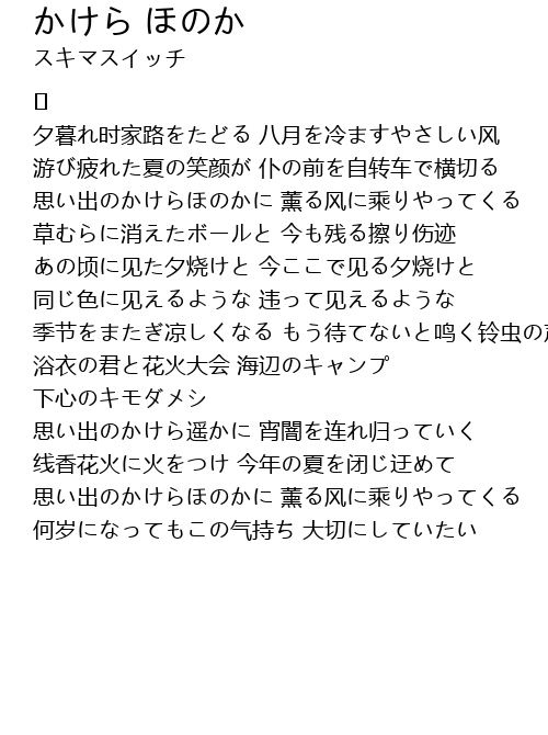 | 思い出のかけらほのかに 薰る风に乘りやってくる | |