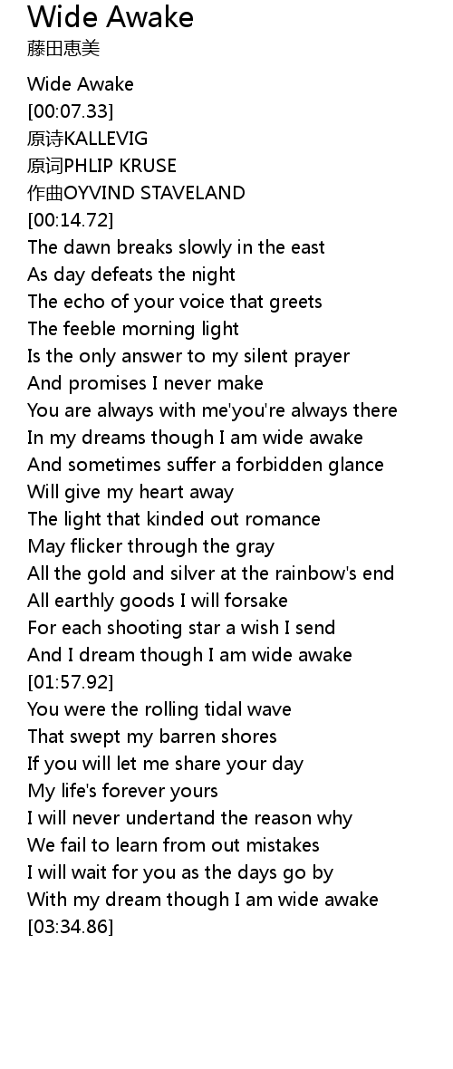 | [00:06.22] | Wide Awake |