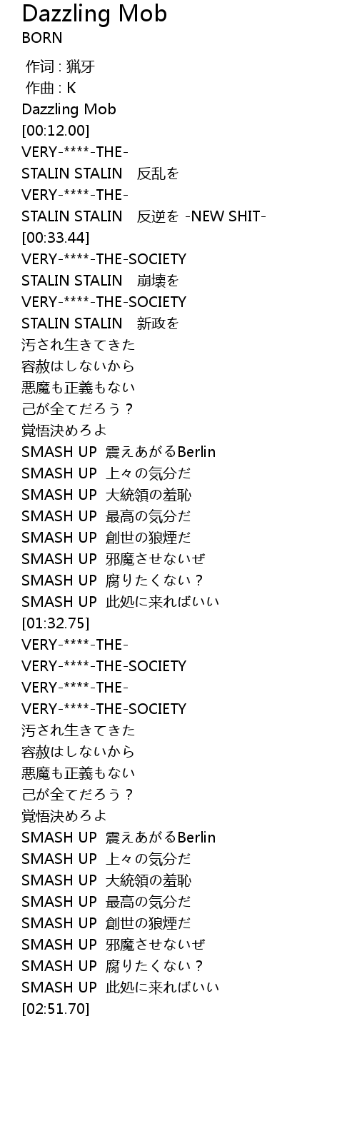 | [00:30.12] | STALIN STALIN 反逆を -NEW SHIT- |