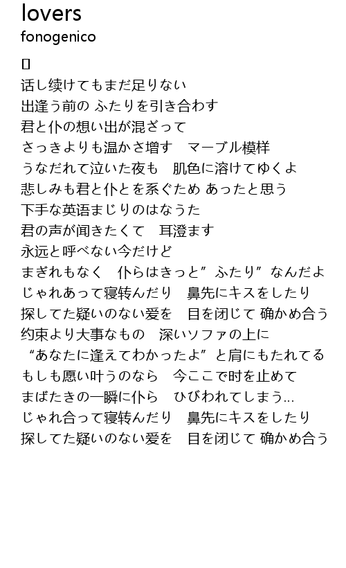 | 探してた疑いのない爱を 目を闭じて 确かめ合う |