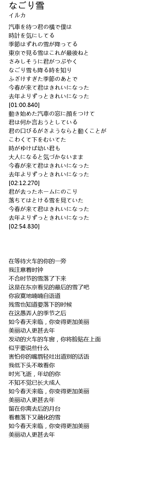 | [00:12.370] | 季節はずれの雪が降ってる |