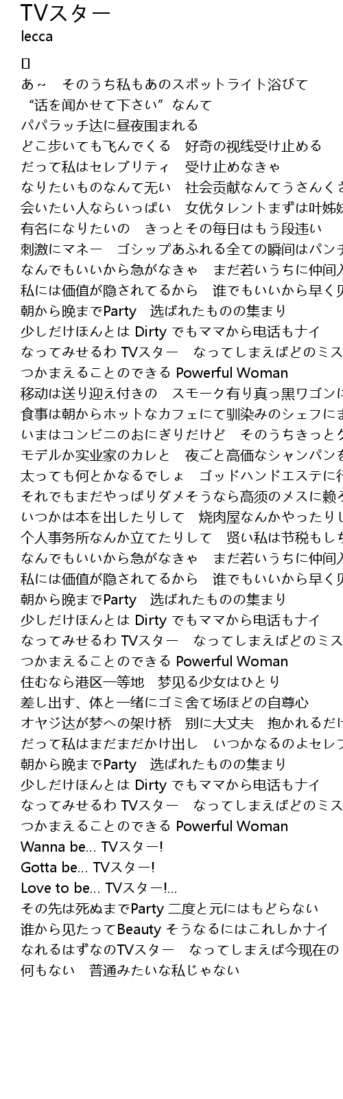 | なれるはずなのTVスター なってしまえば今现在の | |