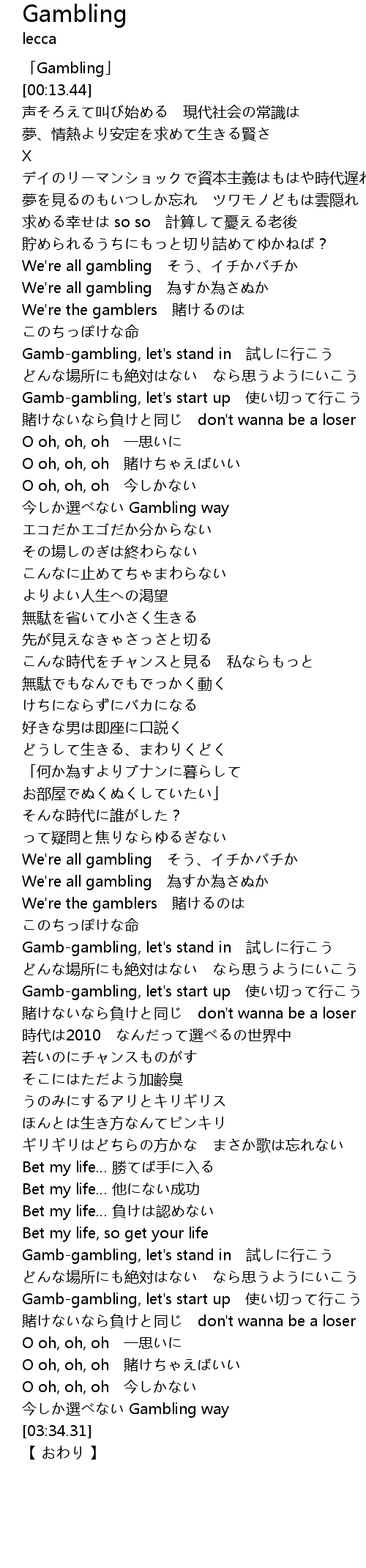 | [00:01.44] | 「Gambling」 |