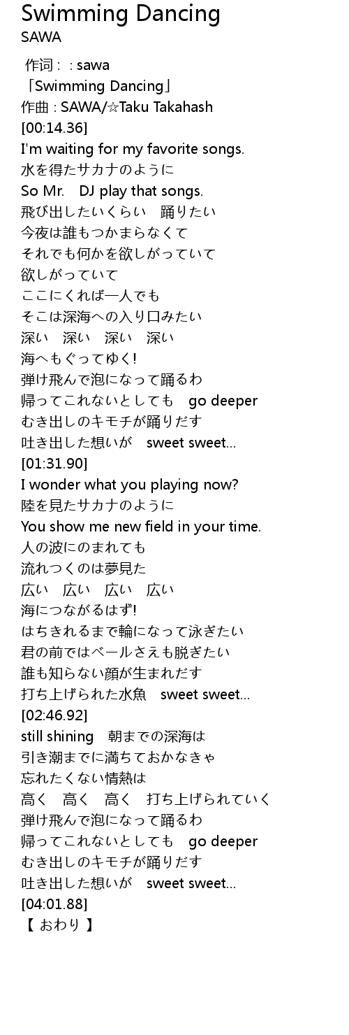 | [00:01.36] | 「Swimming Dancing」 |