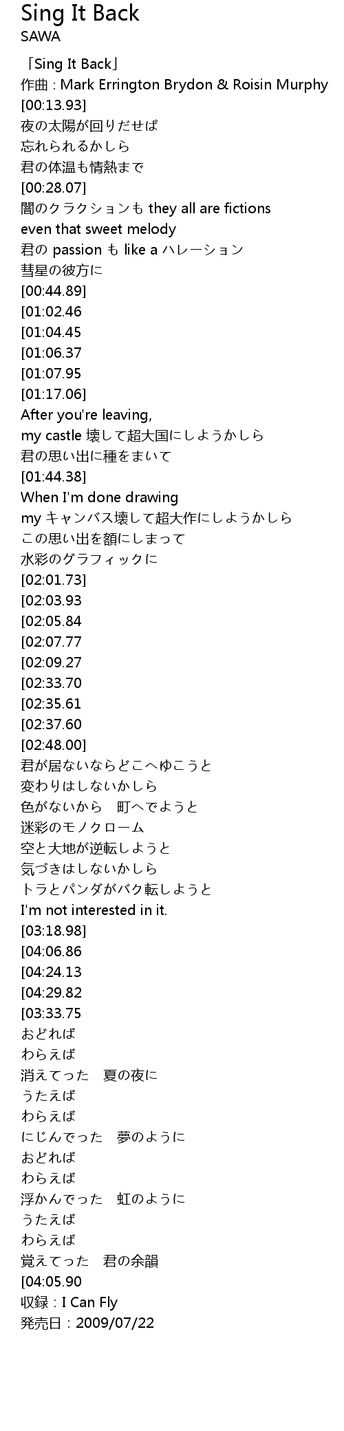 | [00:01.93] | 「Sing It Back」 |
