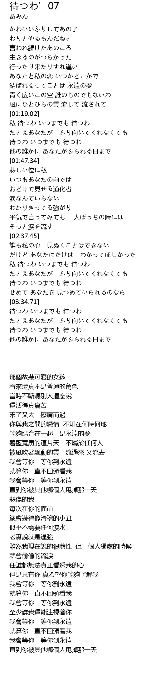 [03:35.35] 待つわ いつまでも 待つわ
