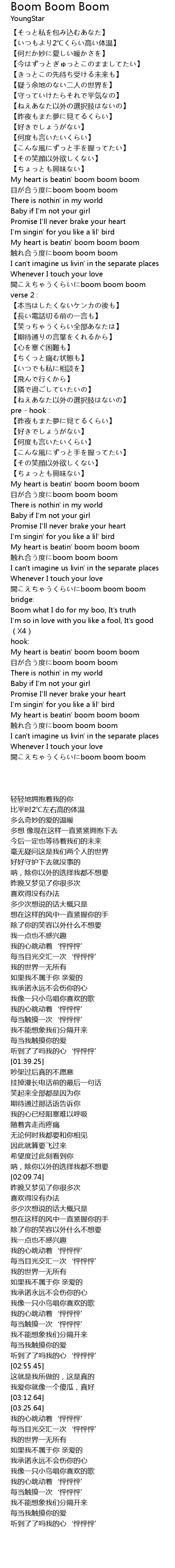 | [02:39.24] | My heart is beatin' boom boom boom |