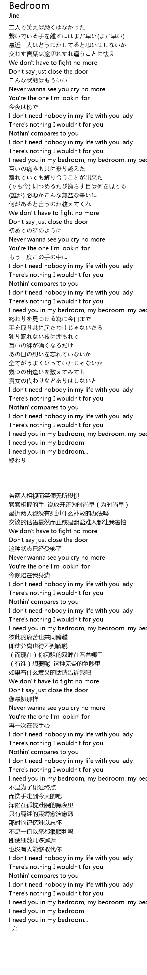| [01:33.400] | I need you in my bedroom, my bedroom, my bedroom |