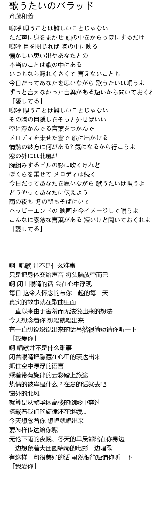 | [04:50.38] | 今日だってあなたを思いながら 歌うたいは唄うよ |