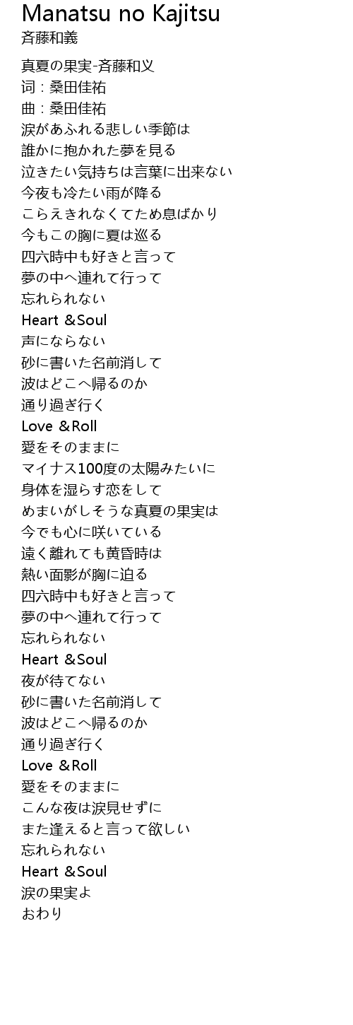 | [00:00.661] | 真夏の果実-斉藤和义 |