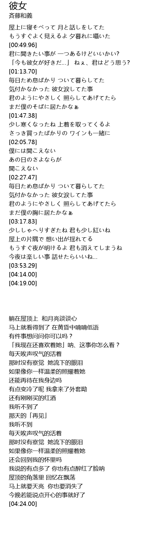 | [02:54.53] | 気付かなかった 彼女涙してた事 |