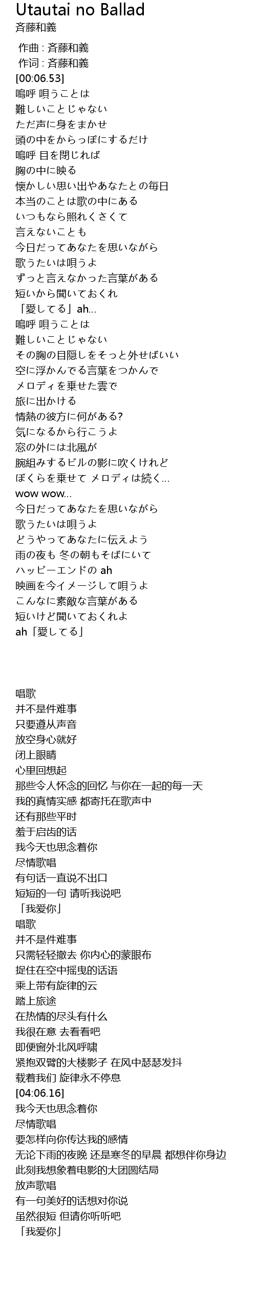 作词 : 斉藤和義 |