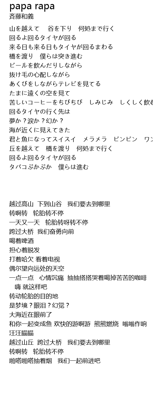 | [02:09.100] | 回るよ回るタイヤが回る |