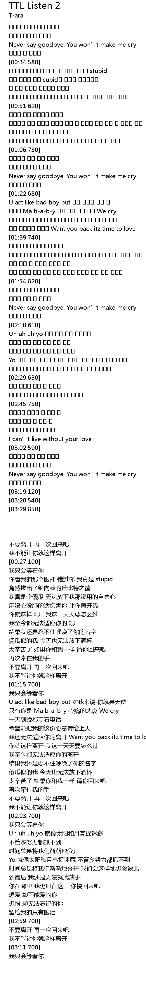 | [02:03.700] | Never say goodbye, You won' t make me cry |