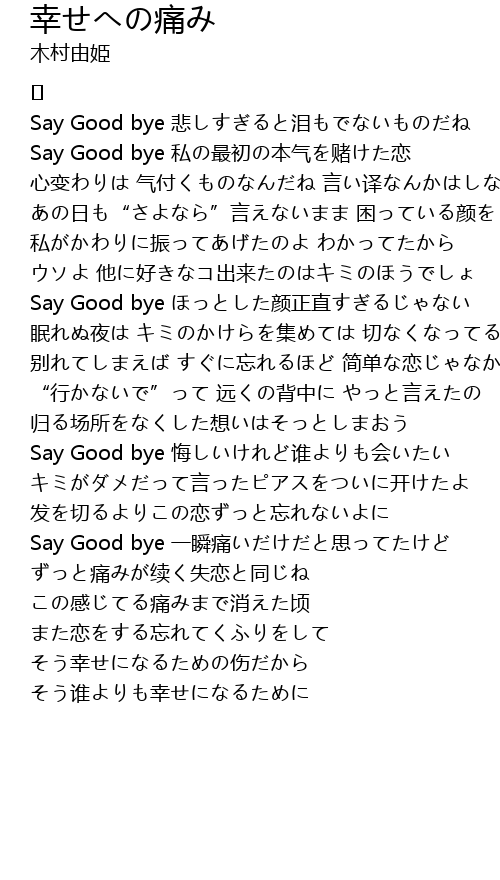 | Say Good bye 悲しすぎると泪もでないものだね | |