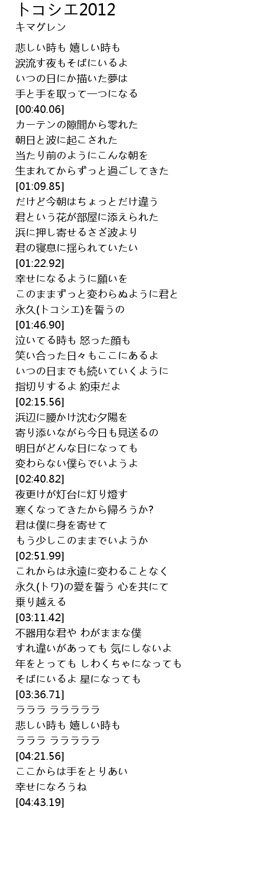 | [04:35.07] | 幸せになろうね |