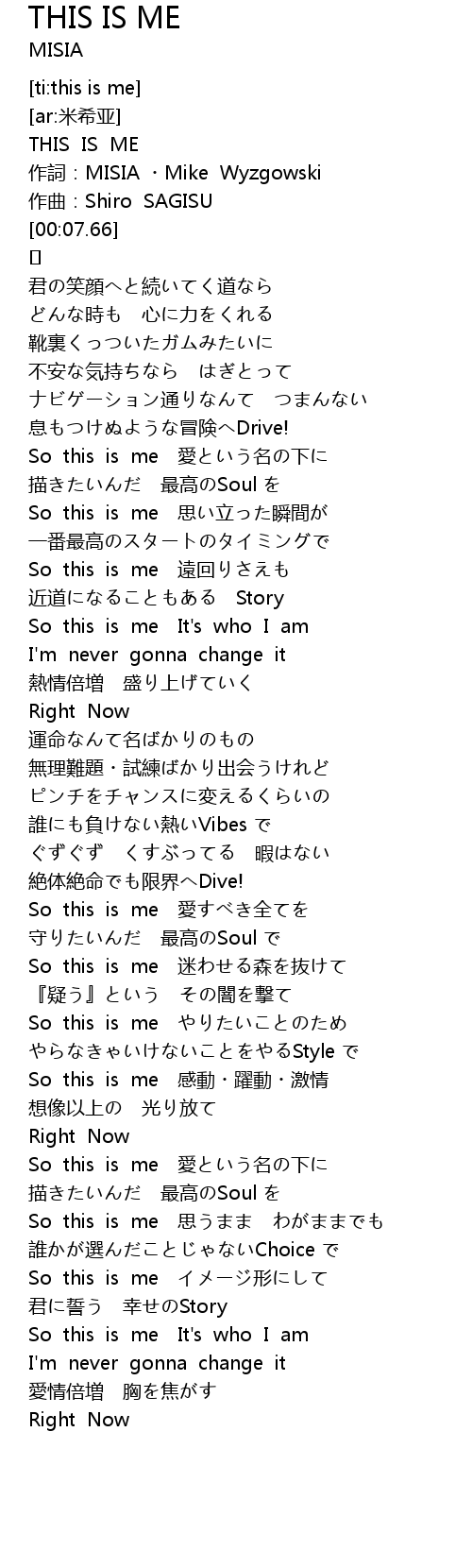 | [02:38.70] | So this is me 感動・躍動・激情 |