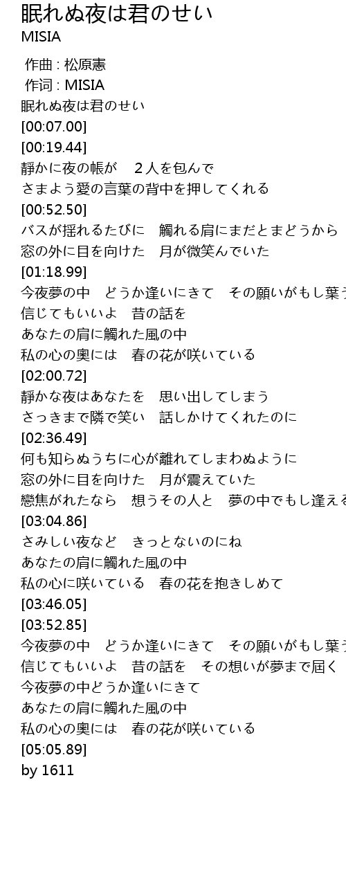 | [00:02.82] | 眠れぬ夜は君のせい |