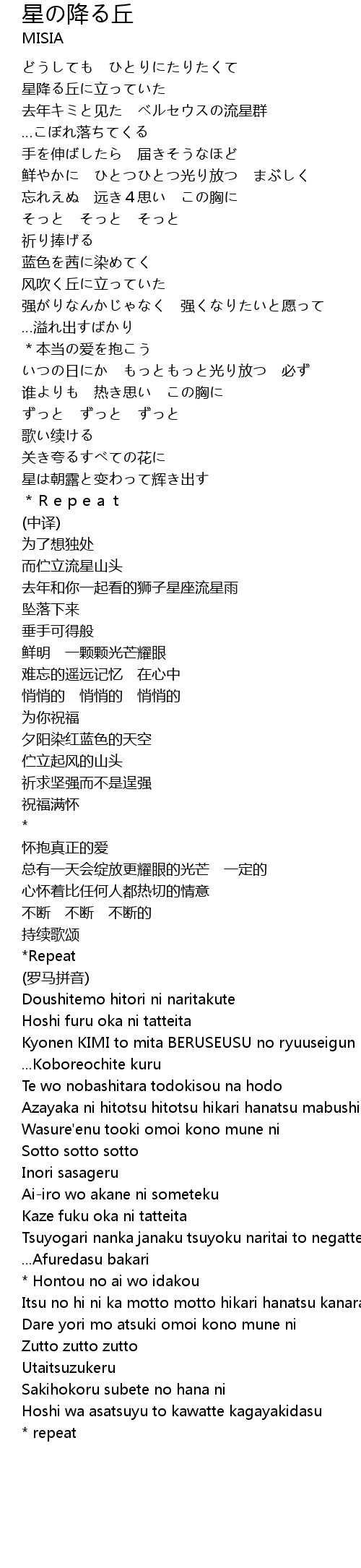 | Song | 星の降る丘 |