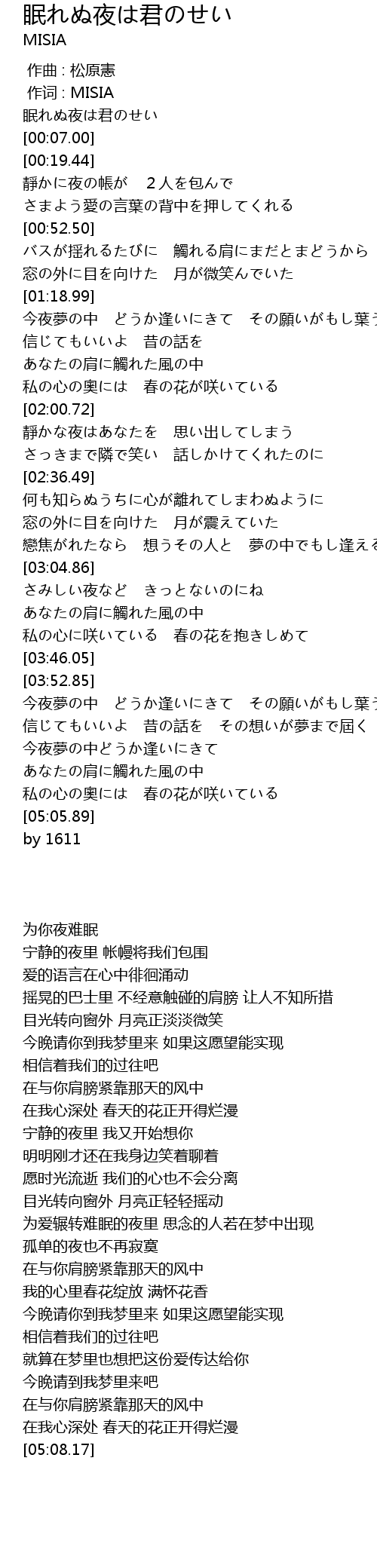 | [00:02.82] | 眠れぬ夜は君のせい |