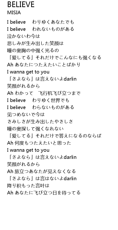 | [00:17.10] | I believe わりゆくあなたでも |