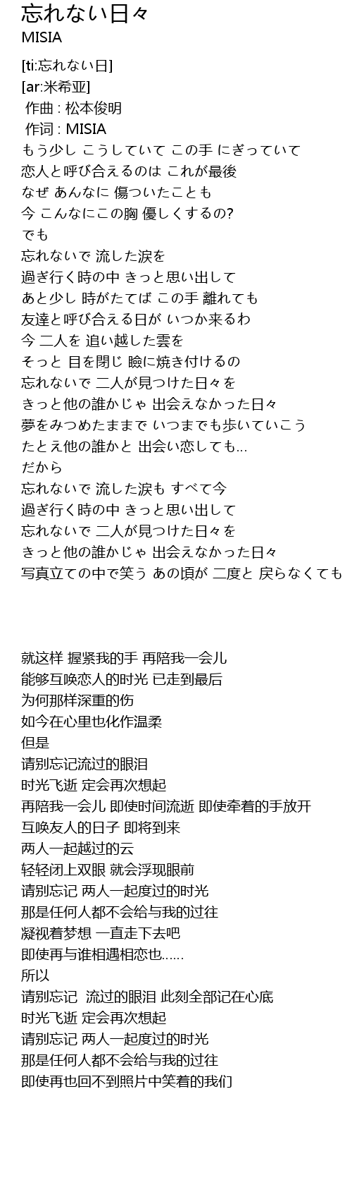 | [00:01.00] | zuò cí : MISIA |