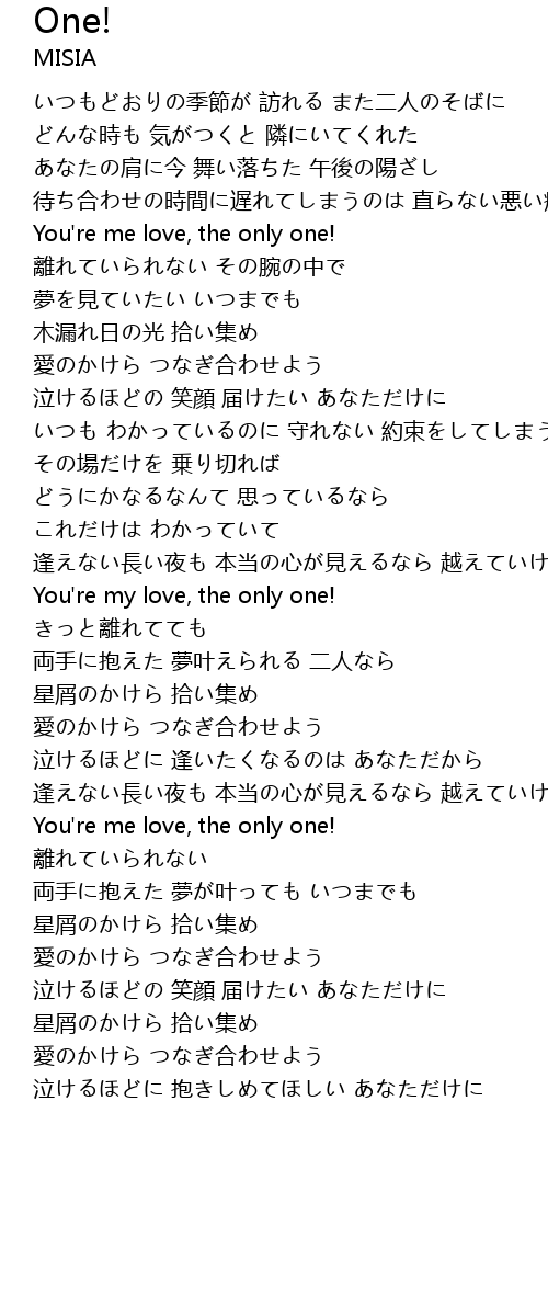 | You' re my love, the only one! | |