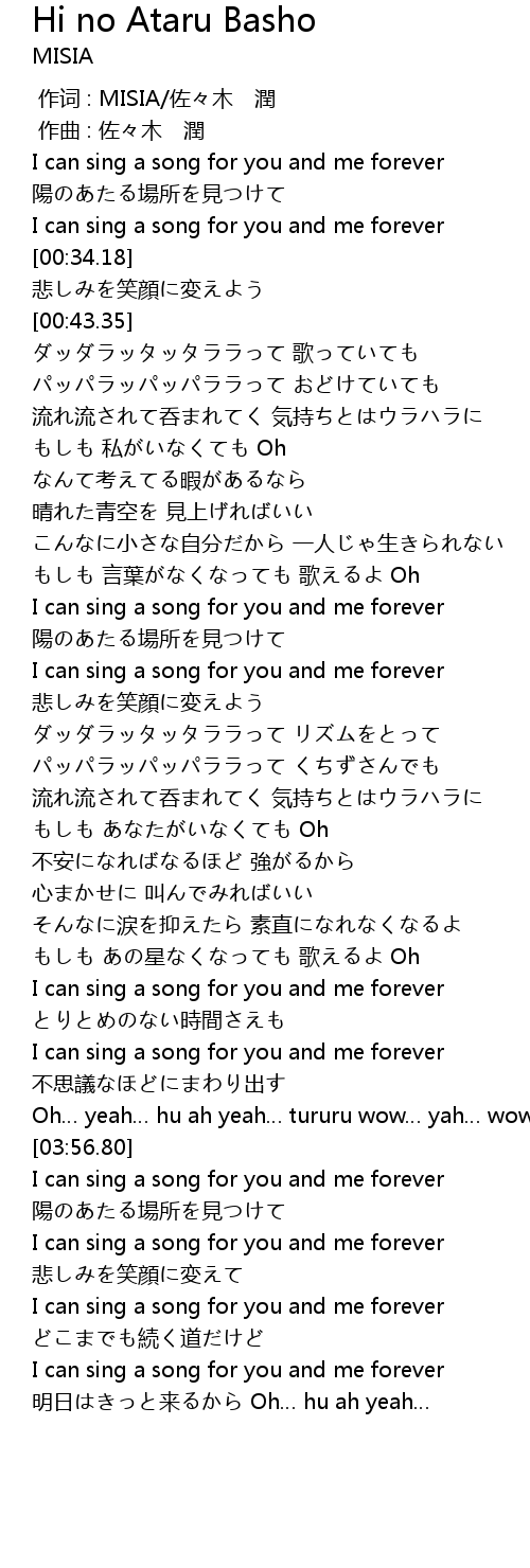 | [00:00.000] | 作词 : MISIA/佐々木 潤 |