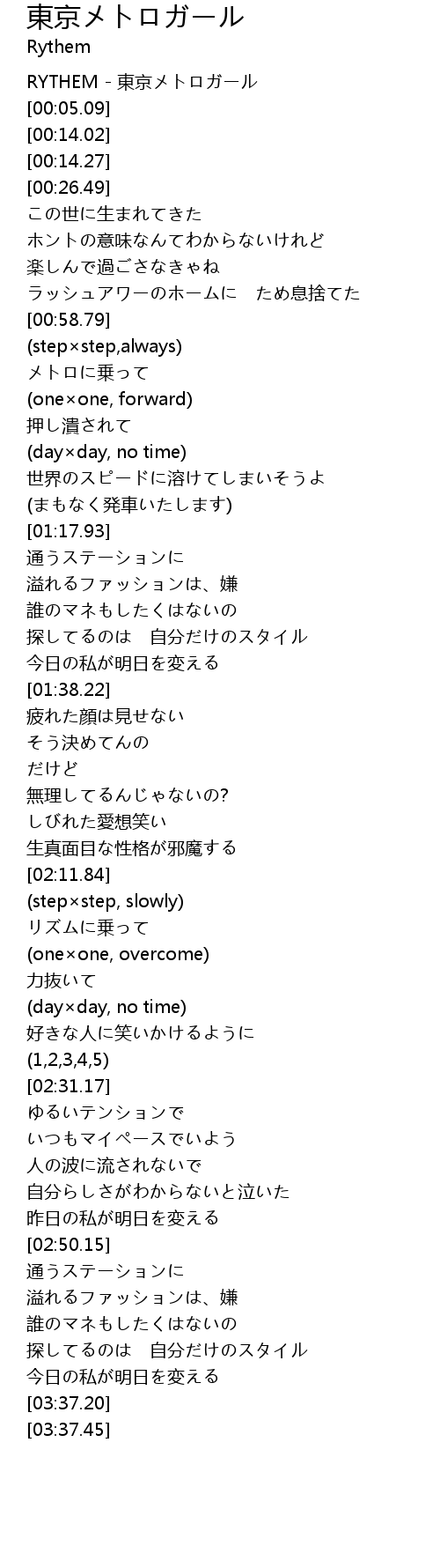 | [00:01.12] | RYTHEM - 東京メトロガール |
