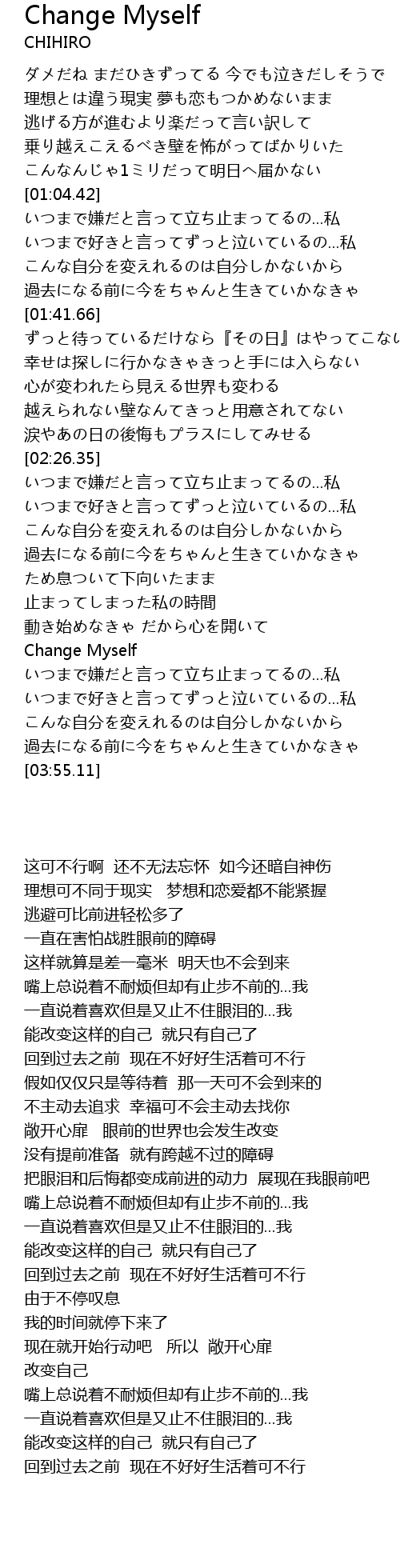 | [03:34.56] | こんな自分を変えれるのは自分しかないから |