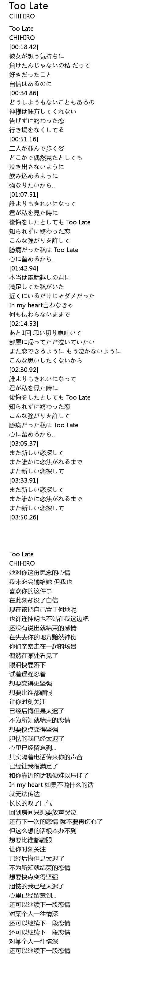 | [02:55.57] | yi bing si Too Late |