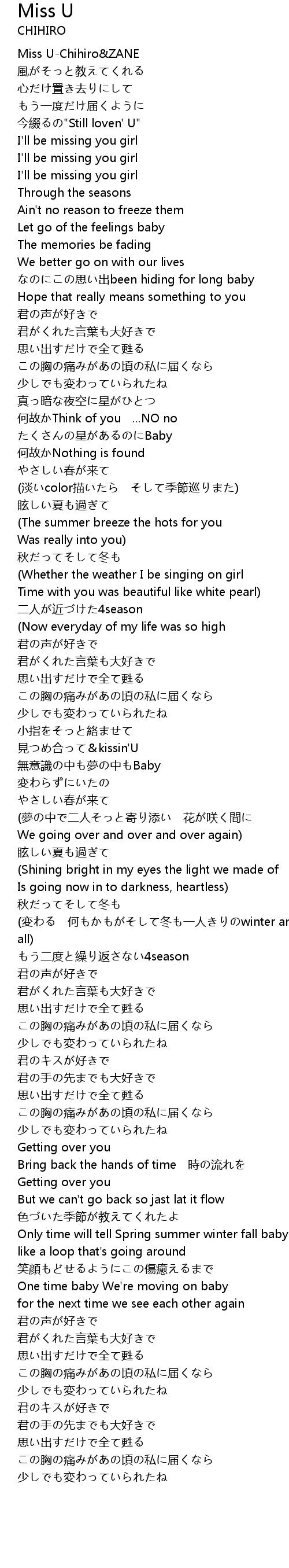 | [00:00.00] | Miss U-Chihiro&ZANE |
