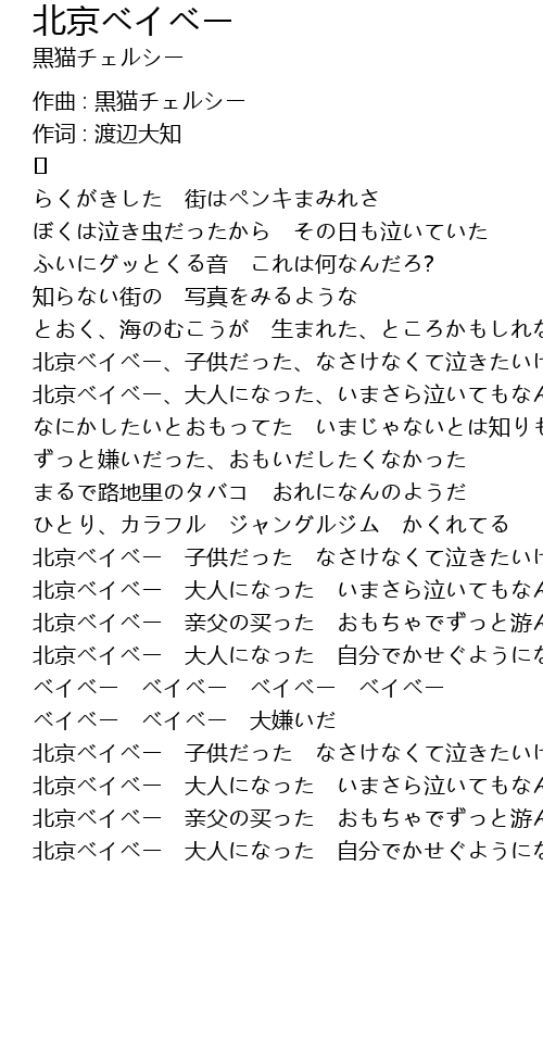 | 北京ベイベー 子供だった なさけなくて泣きたいけど | |