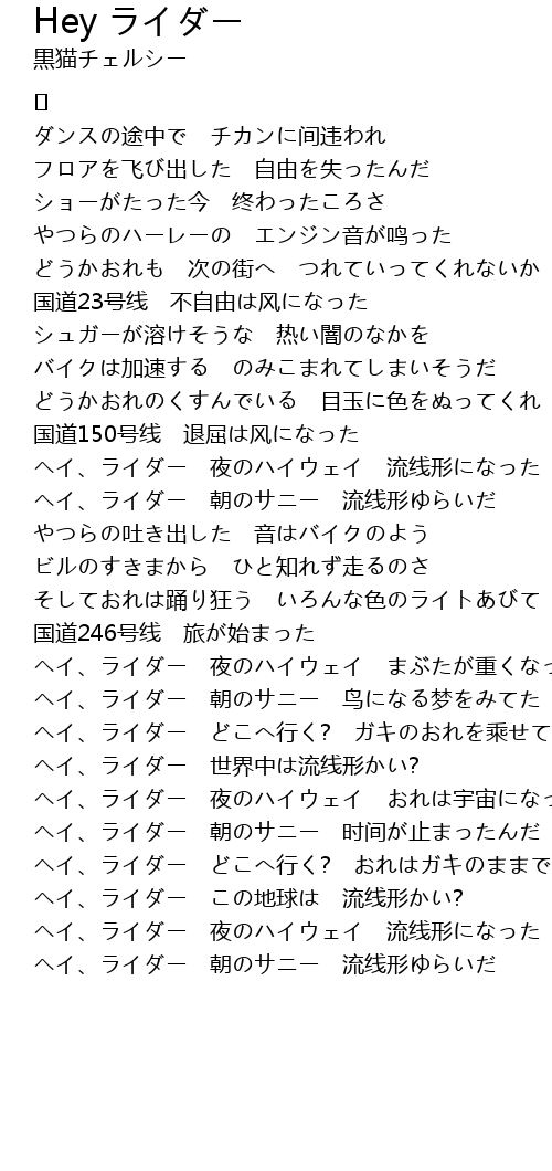 | ヘイ、ライダー 朝のサニー 鸟になる梦をみてた | |
