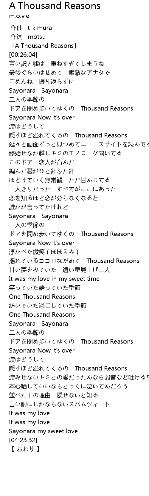 | [00:01.04] | A Thousand Reasons |
