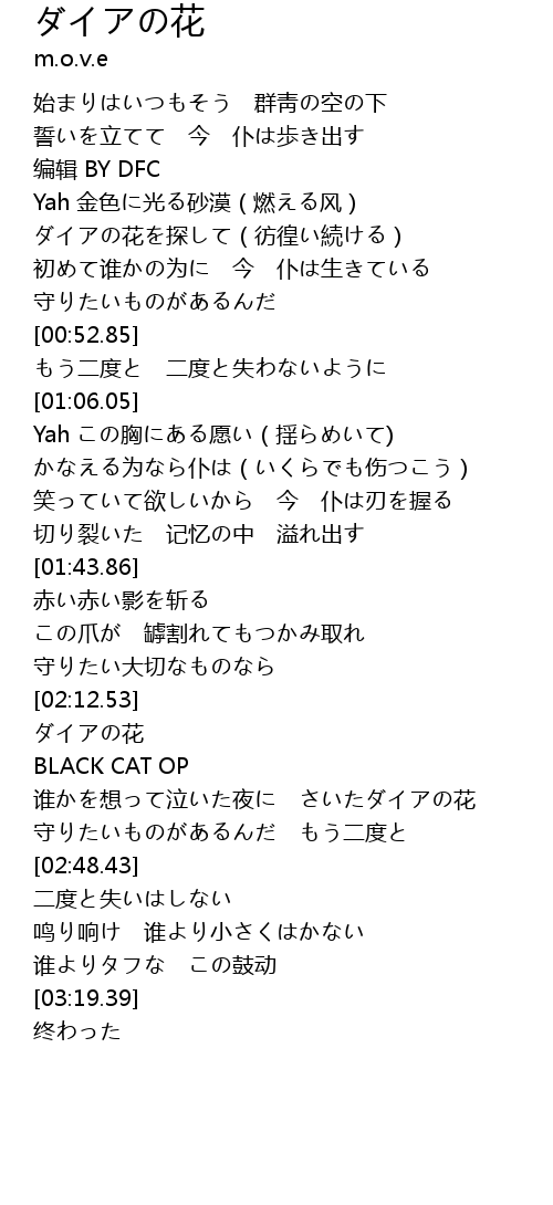 | [00:32.70] | ダイアの花を探して(彷徨い続ける) |
