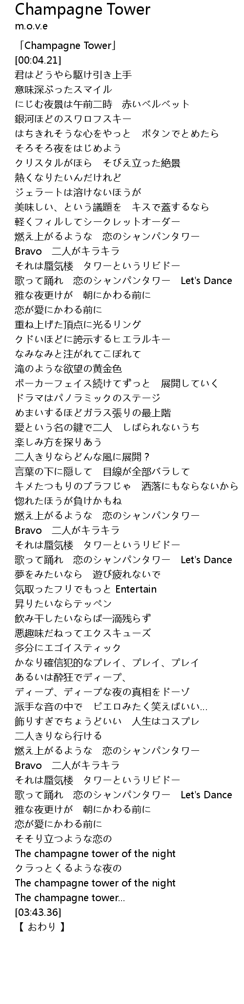 | [00:00.00] | 「Champagne Tower」 |