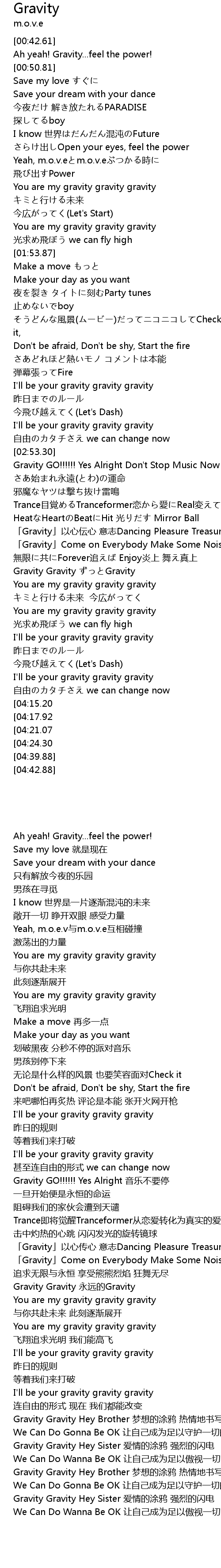 | [03:01.84] | Gravity GO!!!!!! Yes Alright Don' t Stop Music Now |