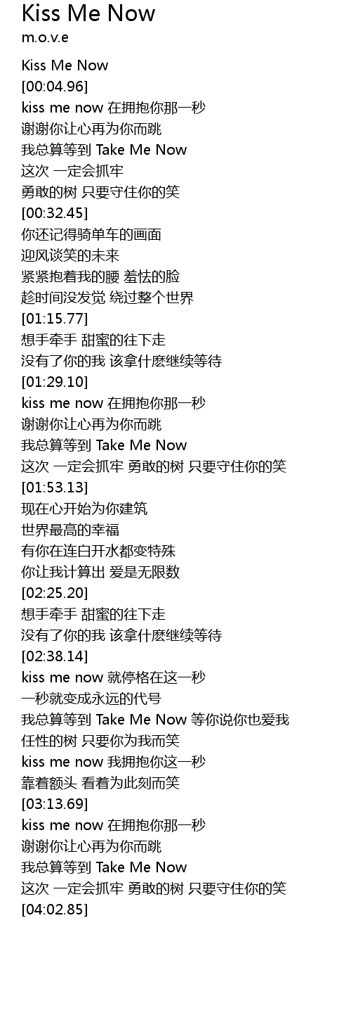 | [03:38.62] | kiss me now zai yong bao ni na yi miao |