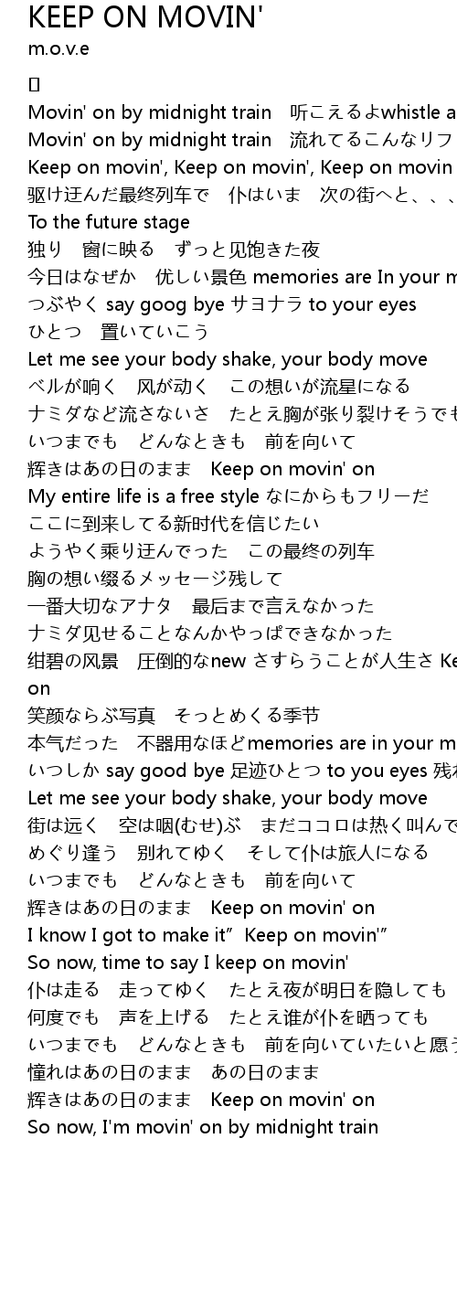 | Movin' on by midnight train 流れてるこんなリフレイン | |