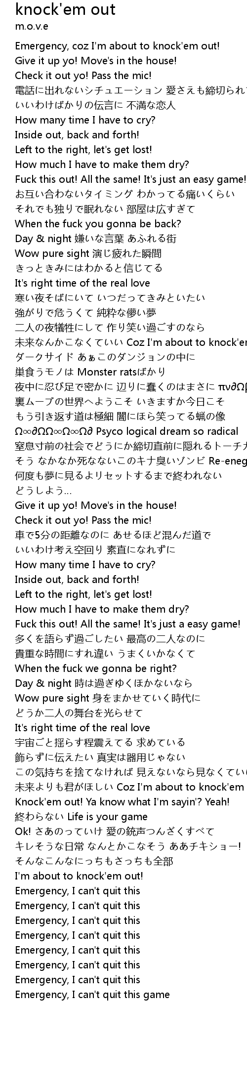 | 未来なんかこなくていい Coz I'm about to knock'em out! | |