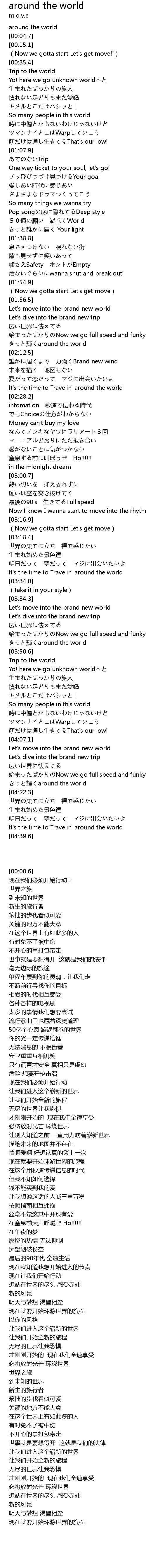 | [04:35.0] | It' s the time to Travelin' around the world |