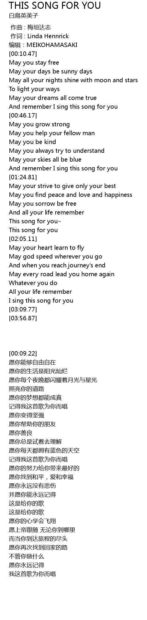 | [00:09.22] | 编辑:MEIKOHAMASAKI |