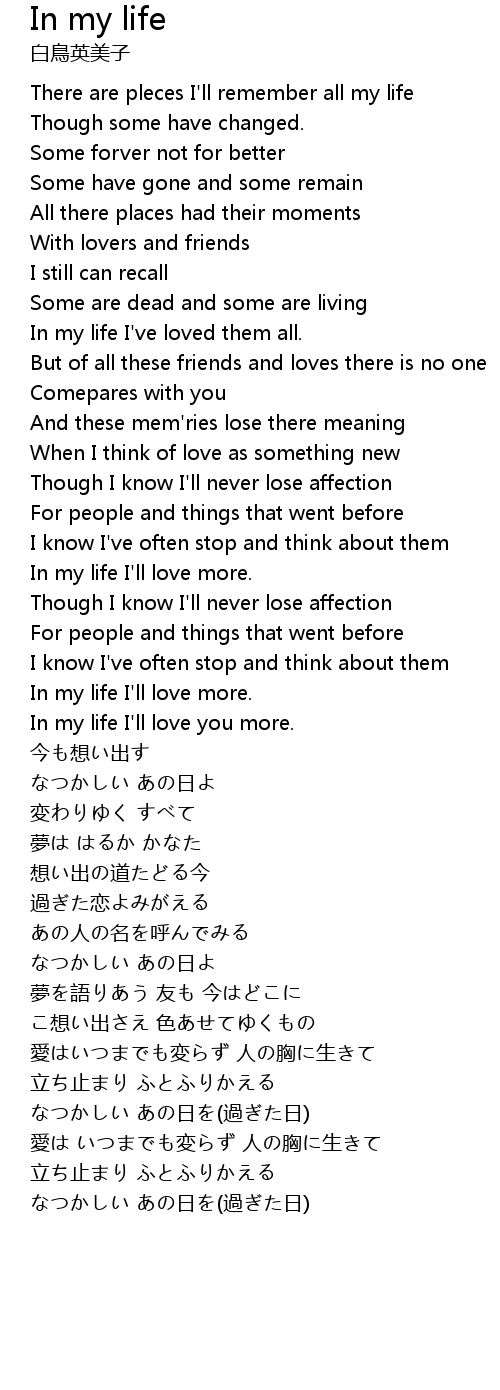 | In my life I'll love you more. | |
