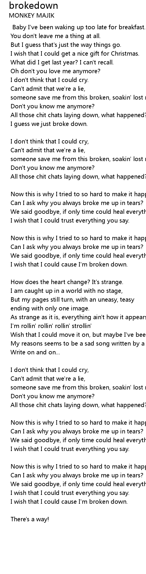 I wish that I could cause I'm broken down. |
